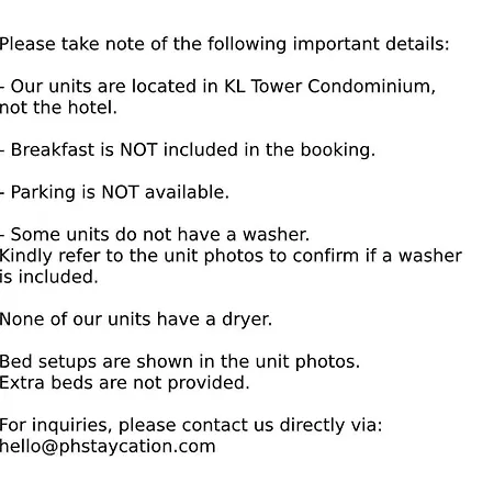 Self-catering facilities include a kitchenette with a microwave oven, an electric kettle, and a refrigerator. The restaurant Azuthai is located approximately 5 minutes' walk away. One Ayala bus stop can be found only 5 minutes' walk from Kl Tower Makati Apartments By Ph Staycation. The inclusion of an indoor pool guarantees a more enjoyable stay. To further enhance their stay at this property, guests are invited to take part in fitness classes.